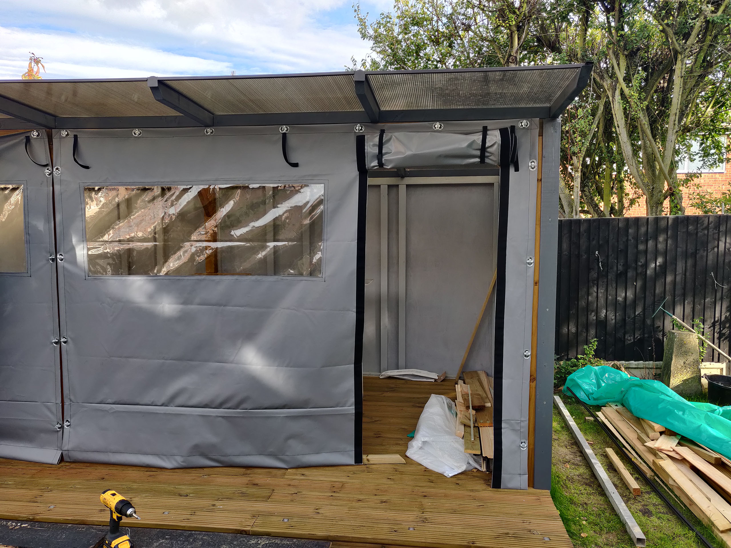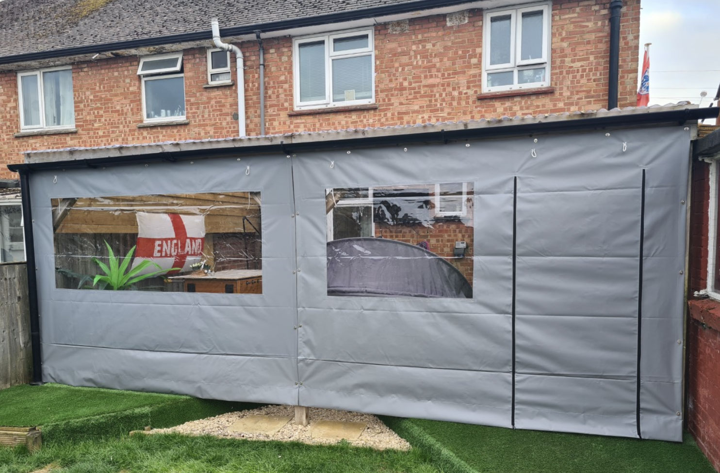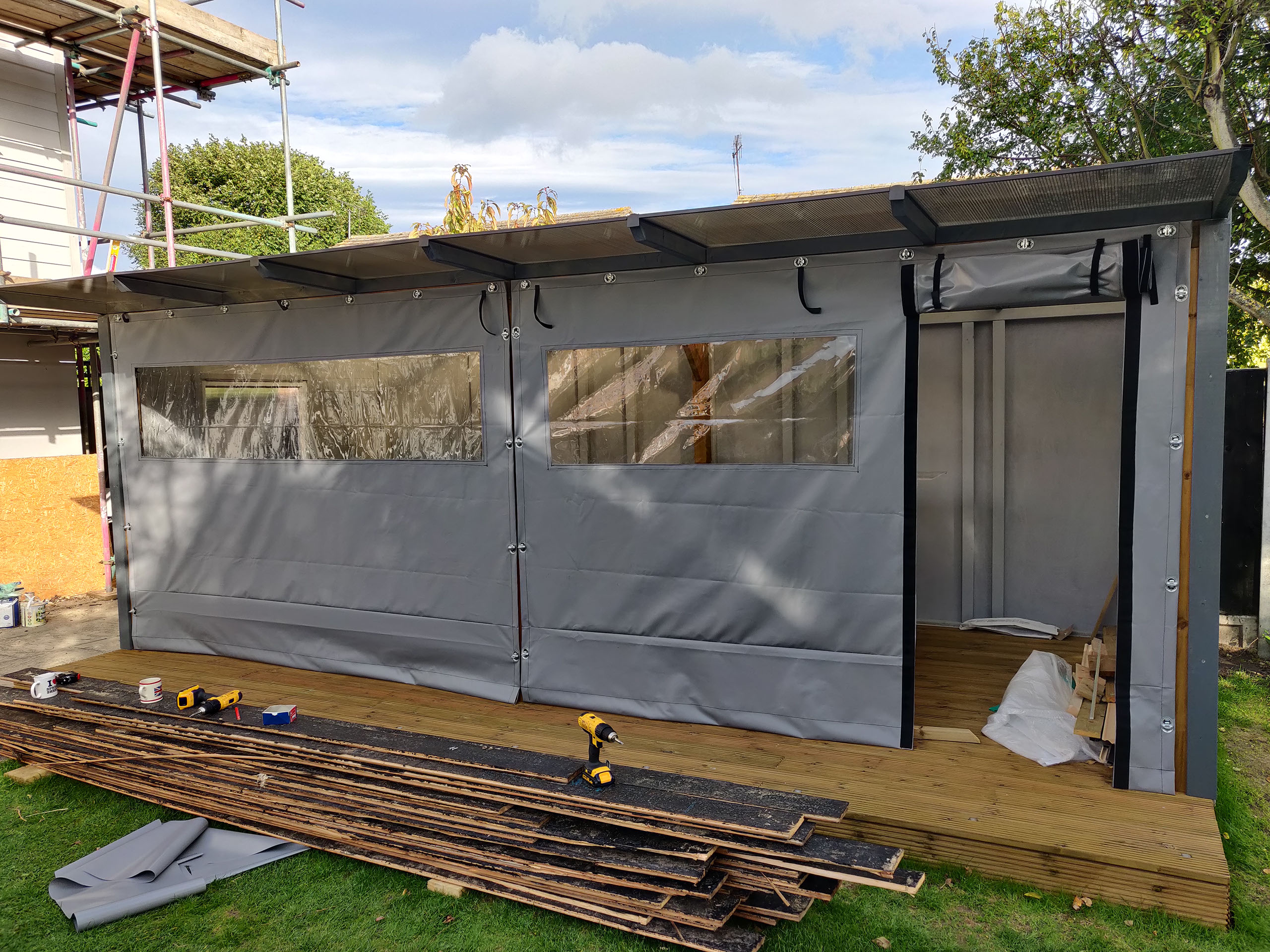 Tarpaulin Roll Up Walls - Made to measure. Contact Phil